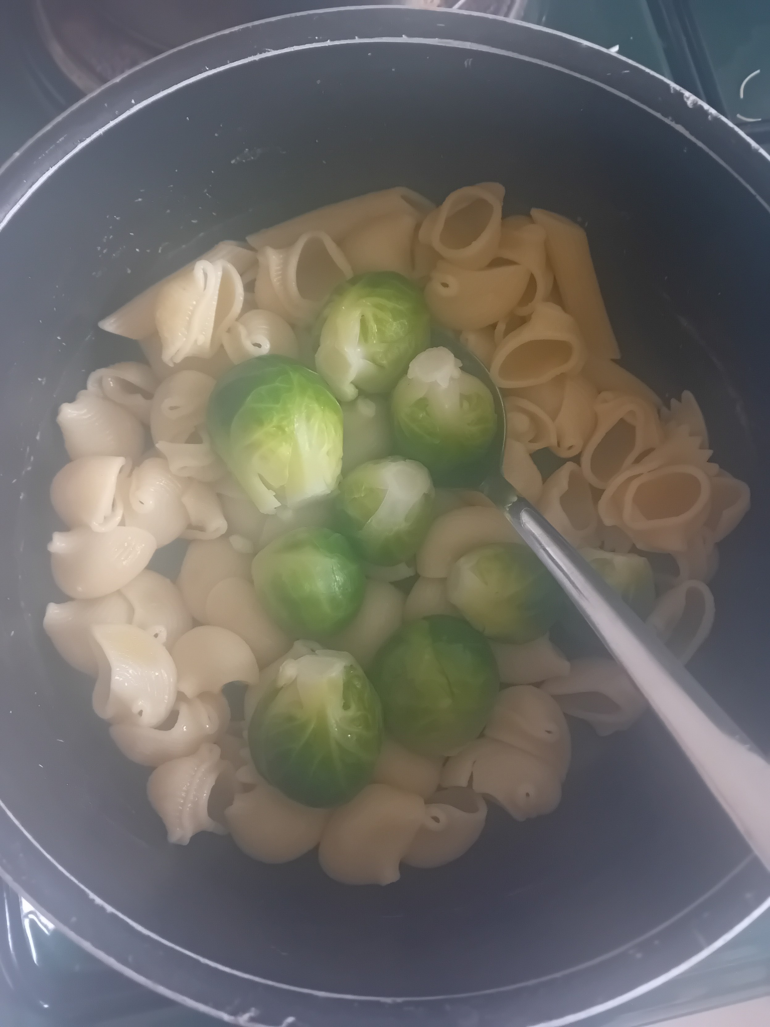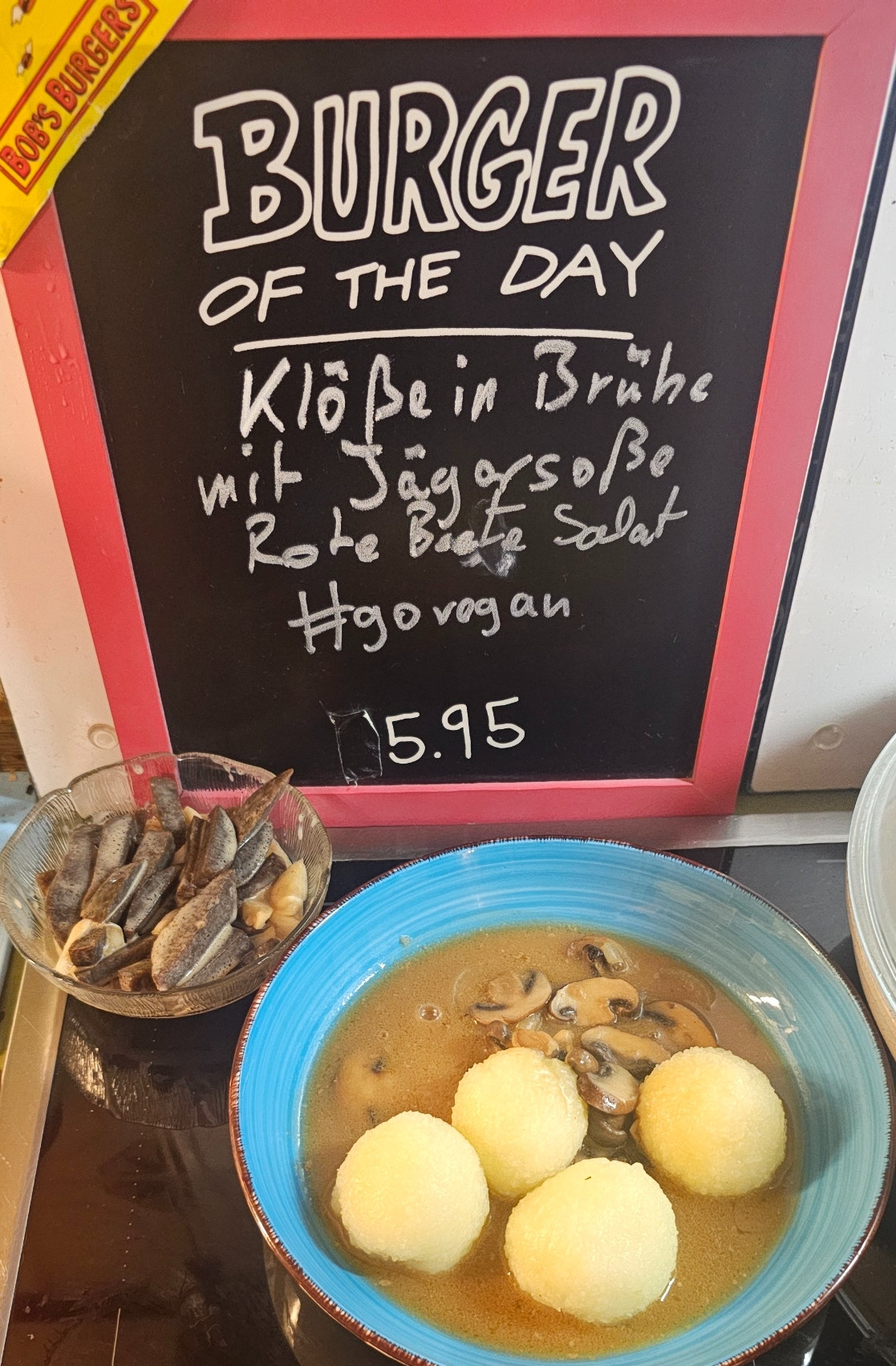 Kleine Klöße in Brühe, trotz schwimmen waren die nicht ganz ganz durch, also da noch ein paar Minuten länger drin lassen. Ich glaube die kleinen schwimmen schneller als die großen.
