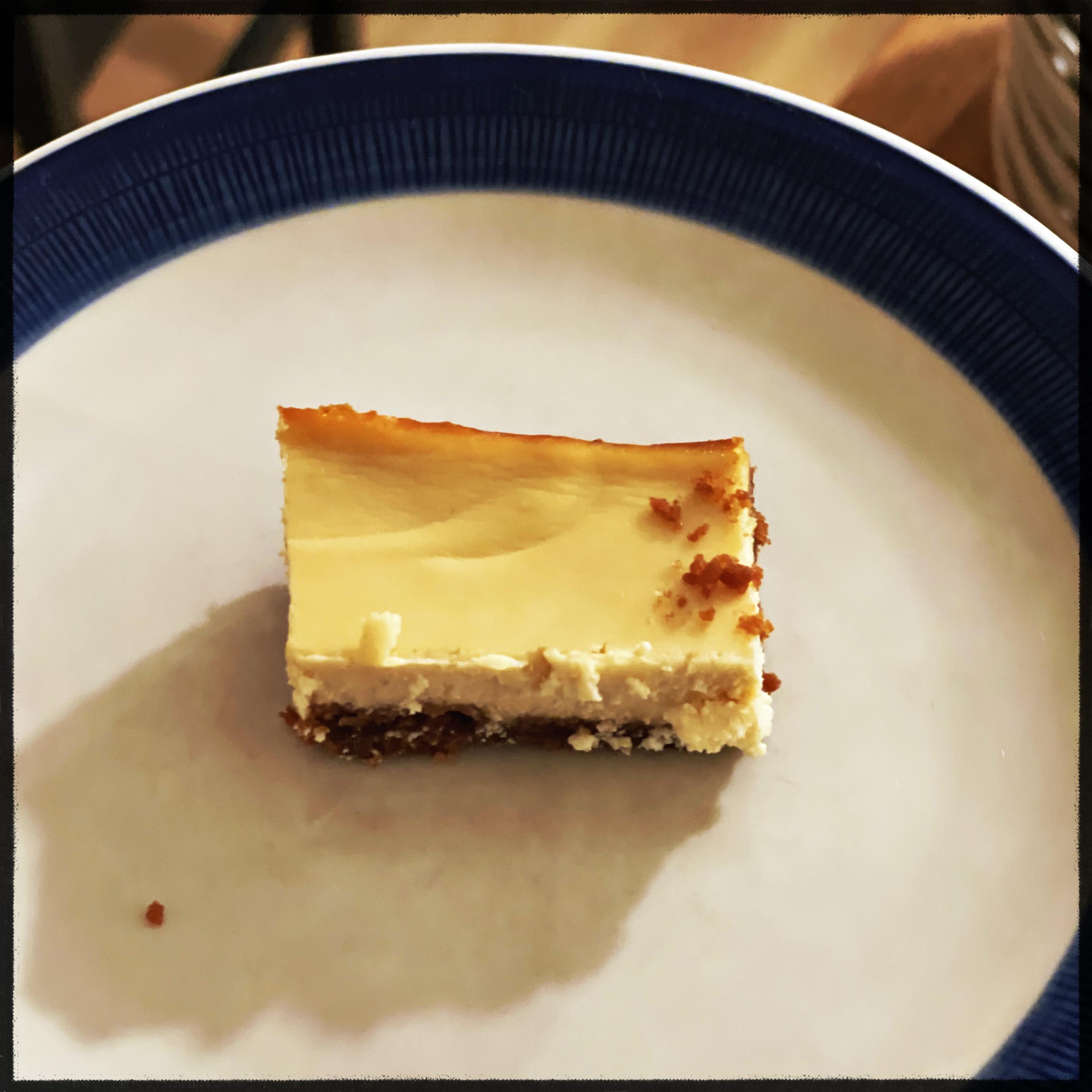 Tried to make a square shape New York Cheesecake for the first time yesterday. It was meant to be shared at a party and I thought it would be easier to share in smaller pieces. It came out good I think. The base was solid enough to get the out of the pan. I also properly caramelized the top of the base so it doesn't soak as quickly