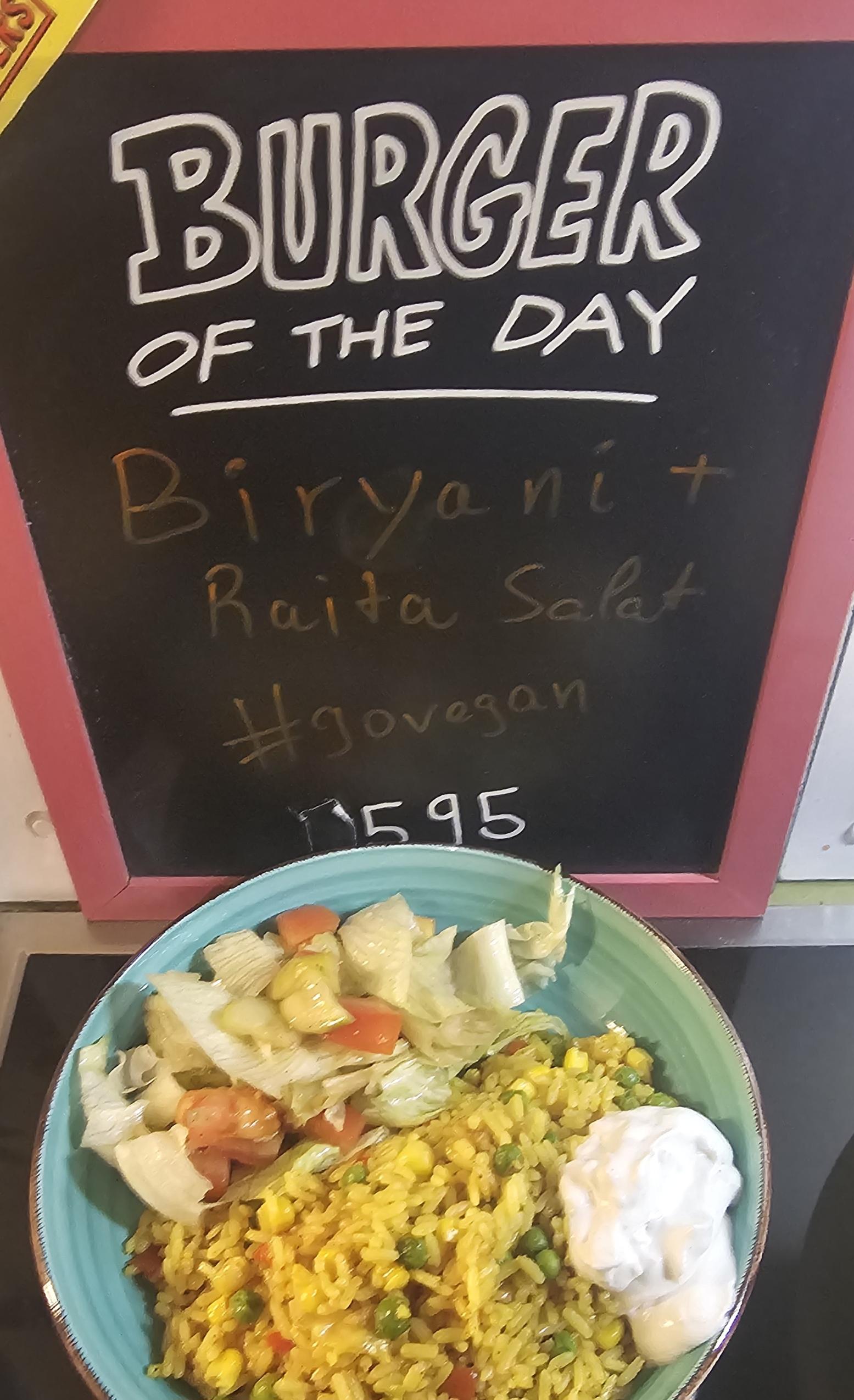hab die Reispfanne vom Eismann, paar indische Gewürze rein und schon ist das Biryani perfekt. Mit Raita aus Hafermilch und veganen Frischkäse, Knobi und Zwiebeln.