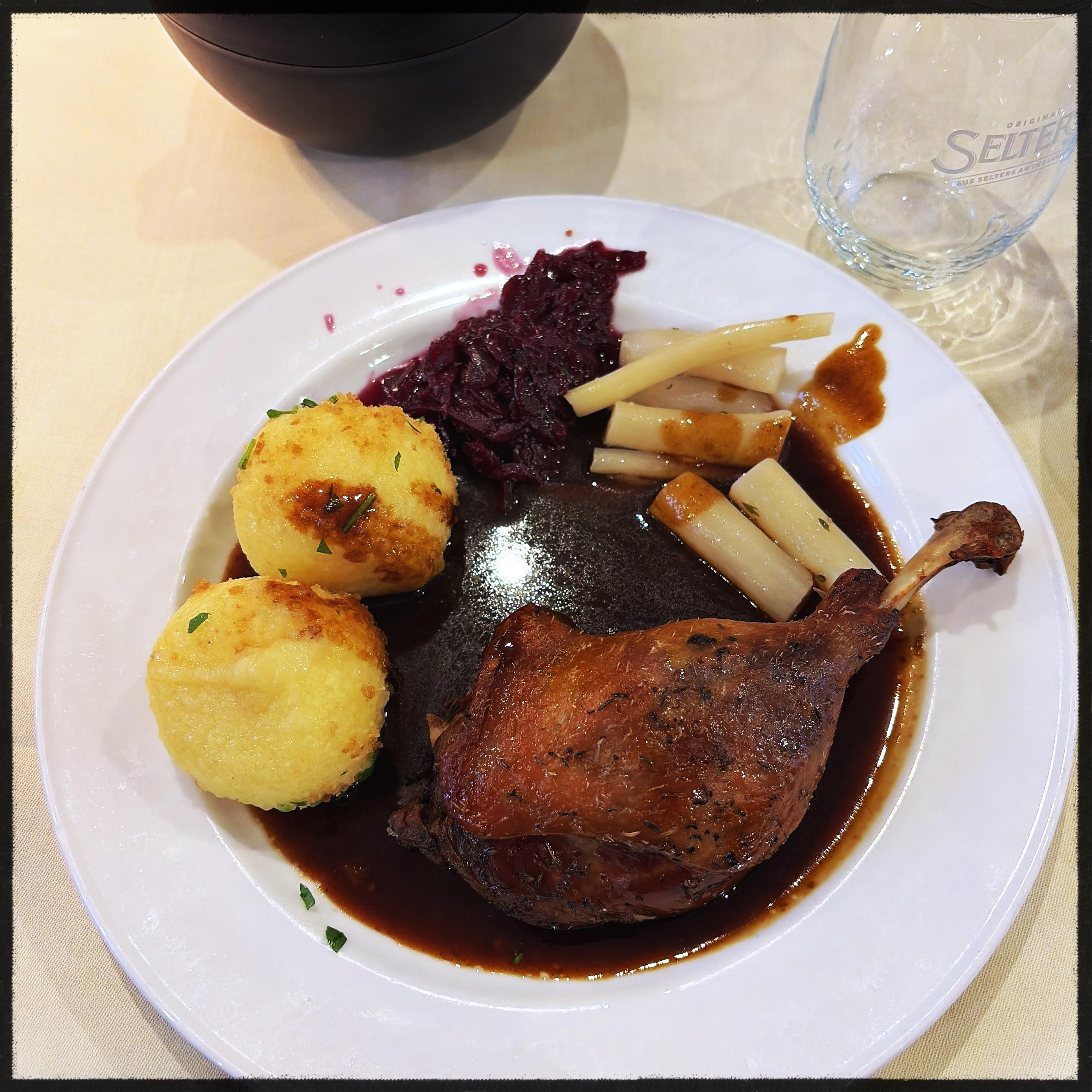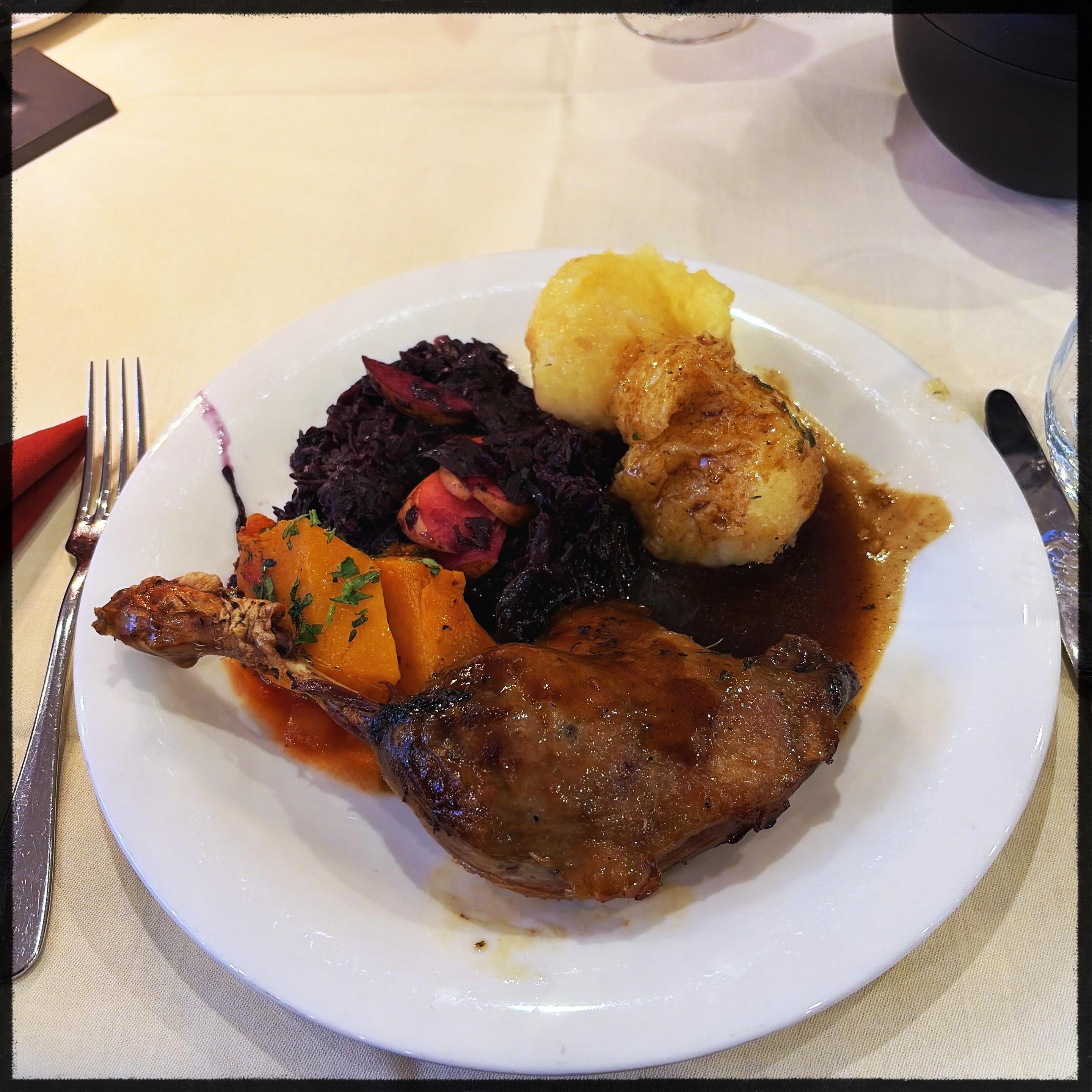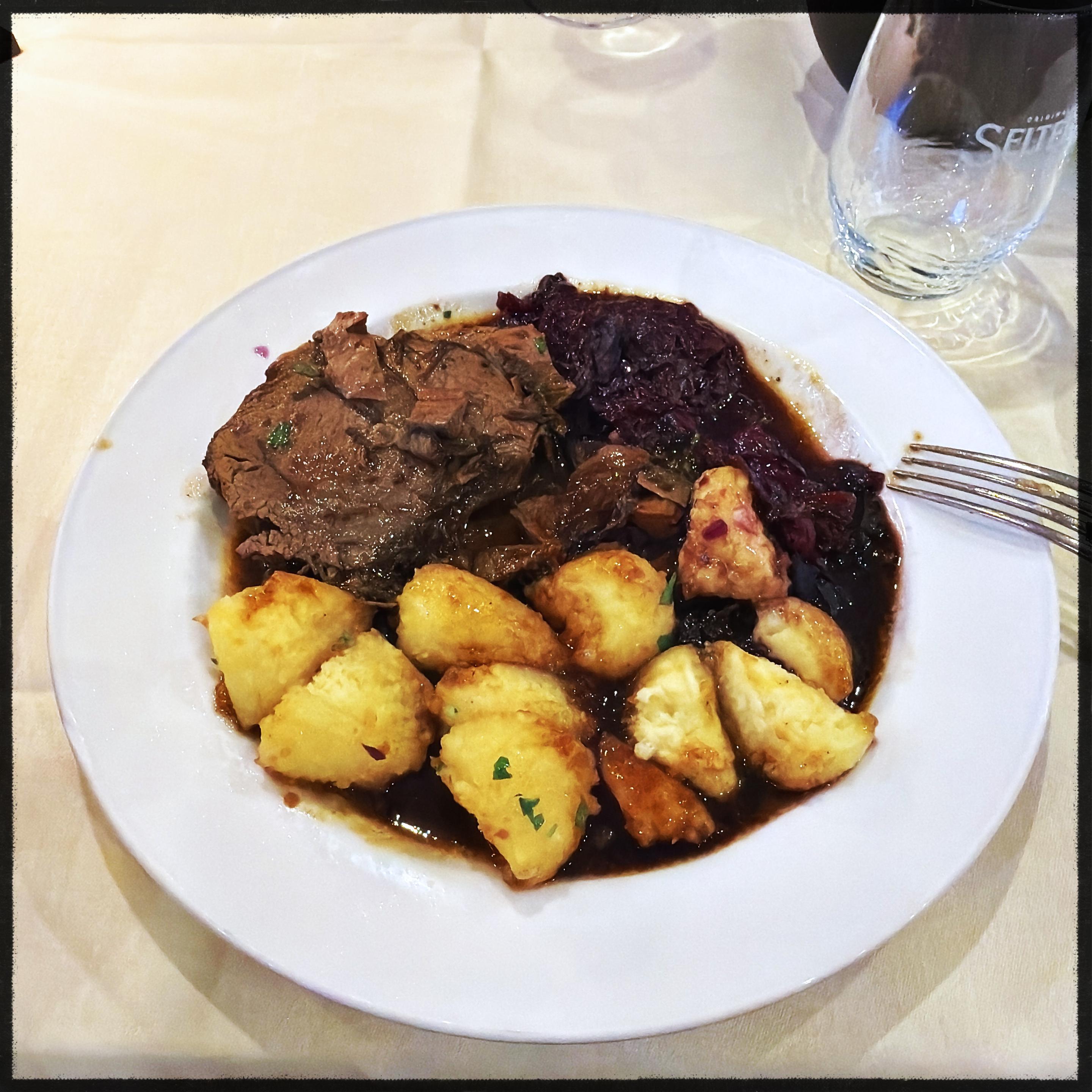 Klöße mit Gulasch gab es zum Sonntag und dazu Bayrisch Kraut, wieder mal aus Weißkohl statt Spitzkohl.