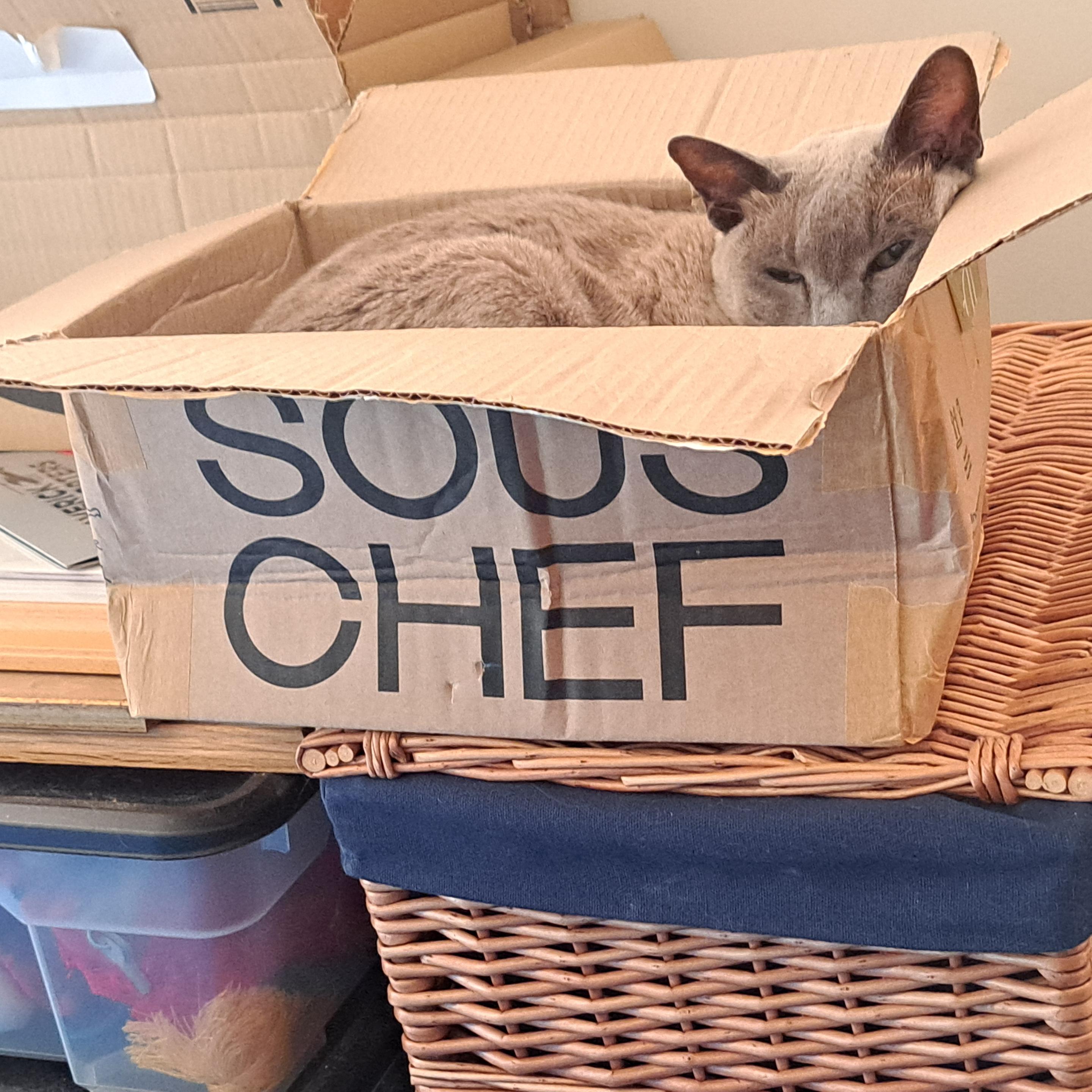 One of my favourite companies to shop from for #FoodPorn items isn't on here. I would have liked to share this picture with them, because Bellatrix likes their boxes - always just the right size, apparently.
