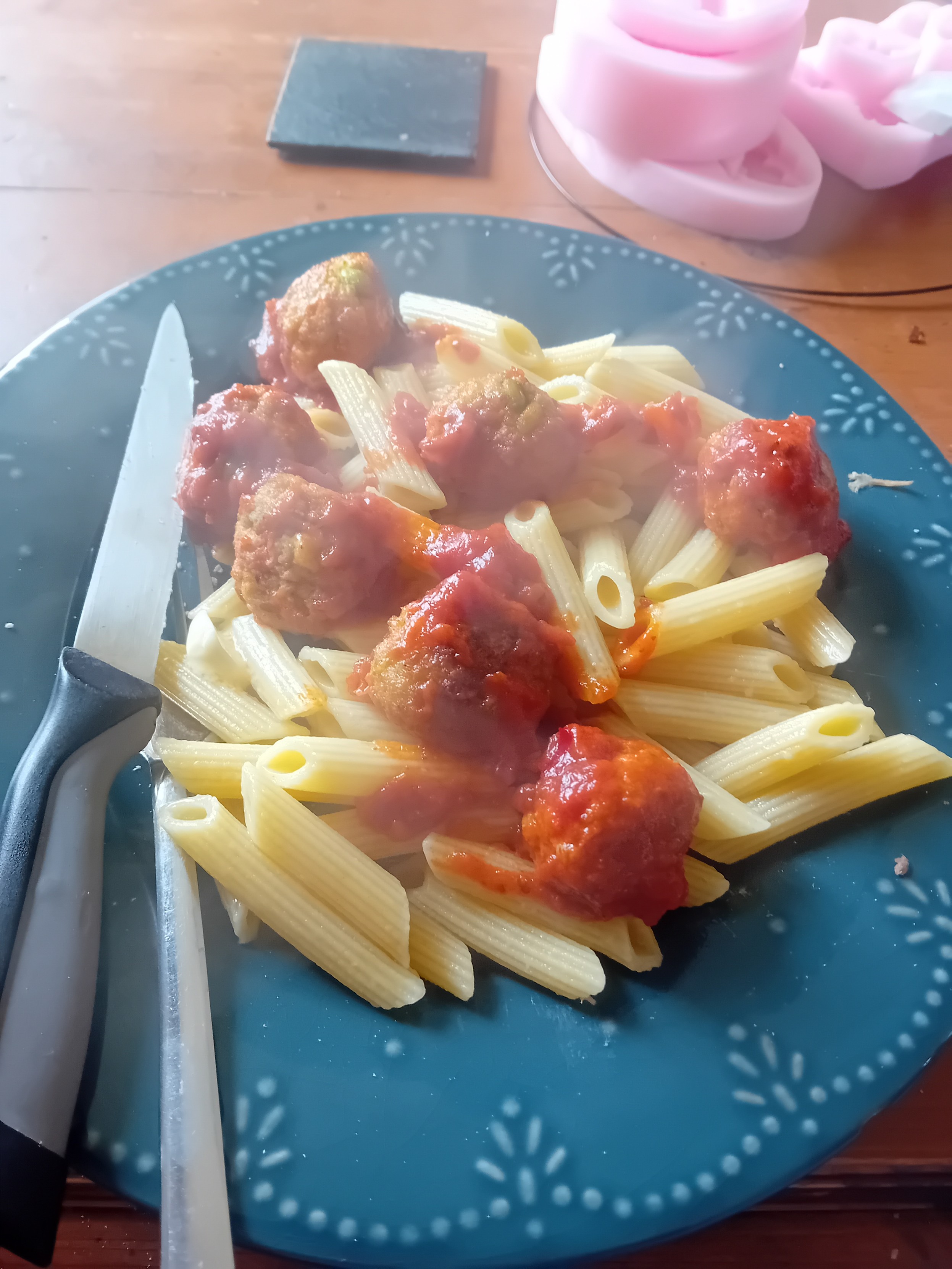 A mix of penne and fusilli pasta to empty the pantry, served with a classic tomato sauce.