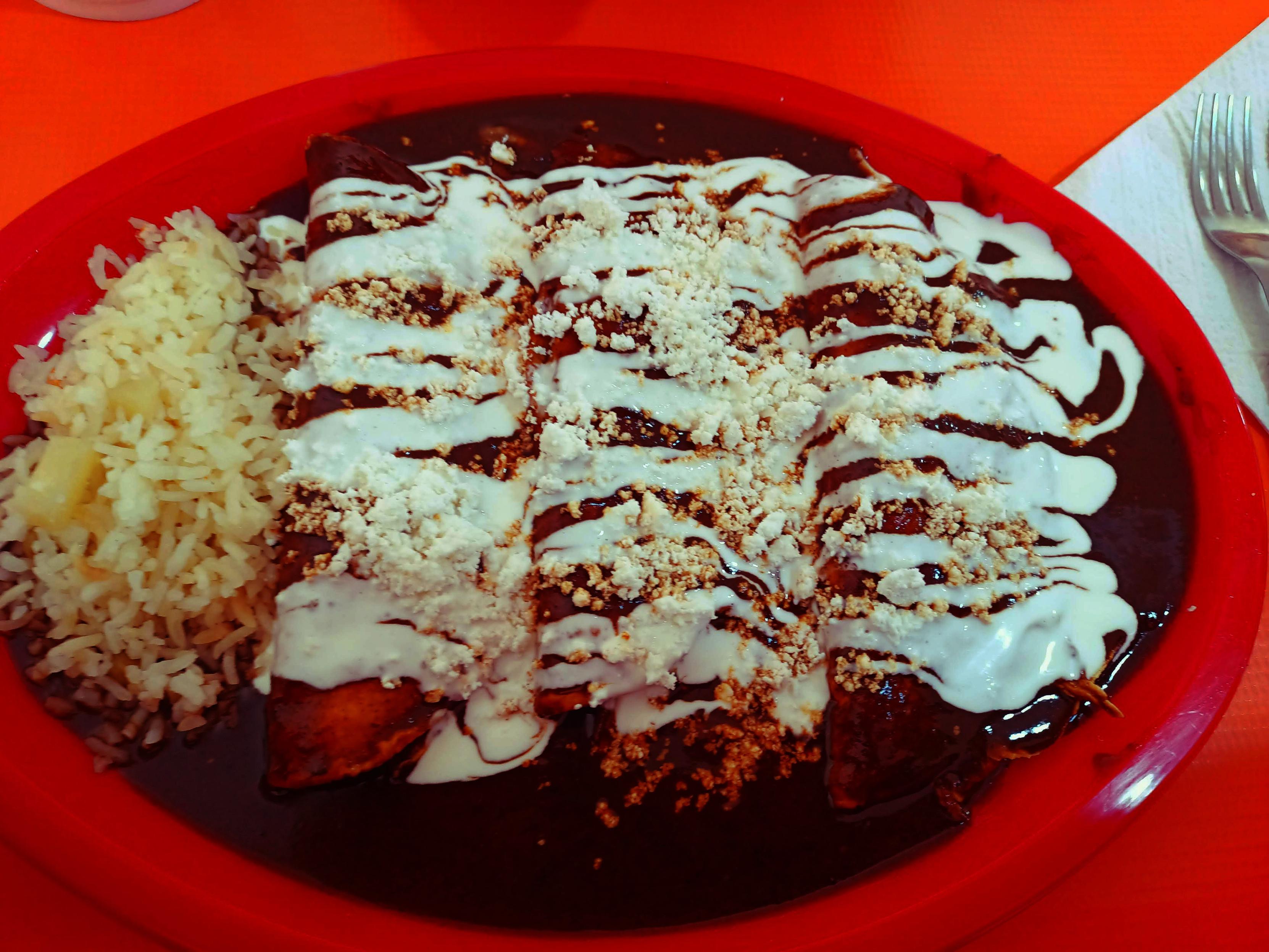 nada mejor para recuperar energías despues de una rodada en la Loma Nopalera que unas Enmoladas con sazón casero, con ese sabor entre dulce y picoso, inundadas de crema y queso rayado, son mis favoritas... 😋🍽️