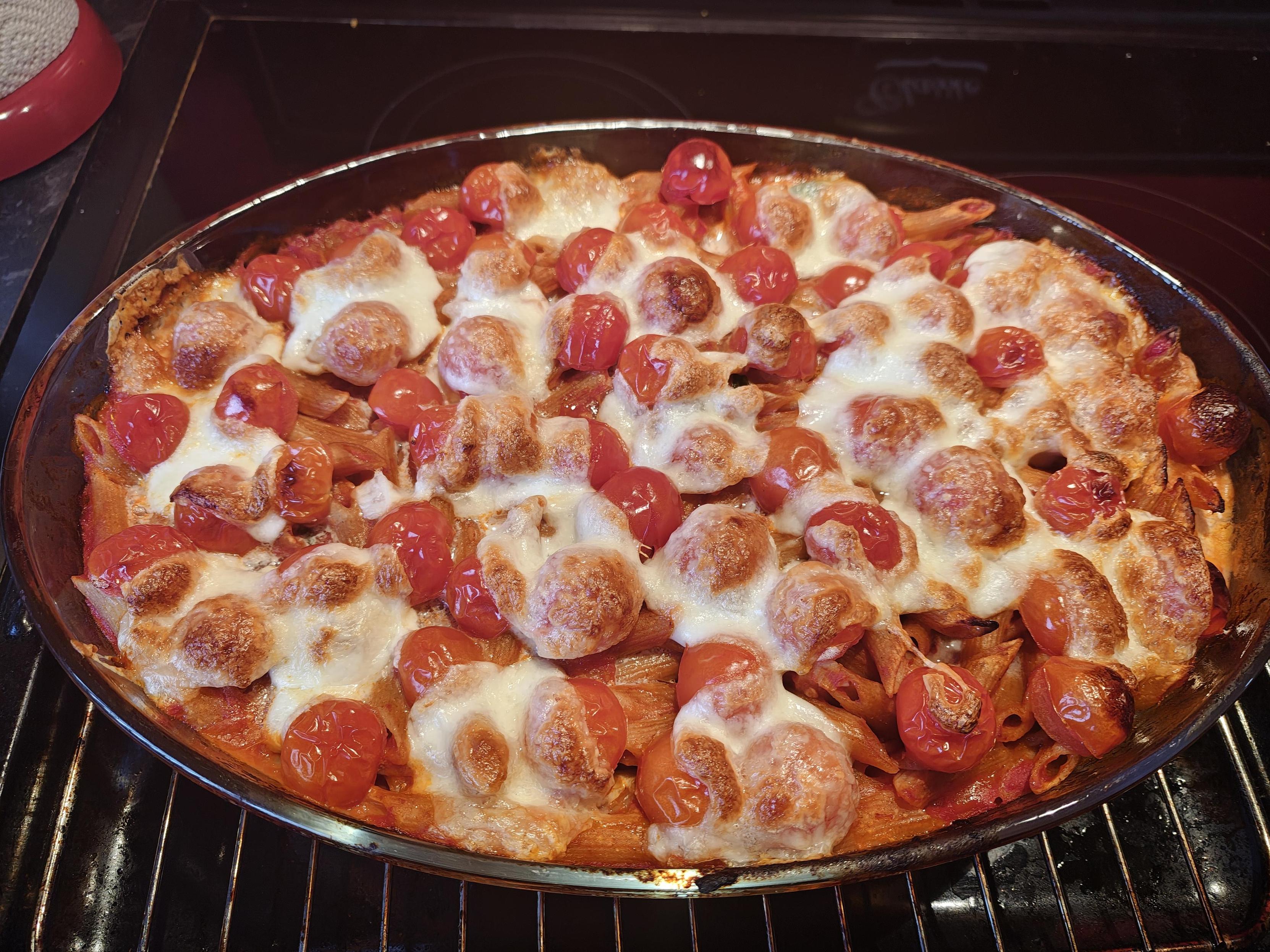 I figured it was the easiest to start with. Basically, everything just goes into the casserole dish, gets baked, cheese gets added on top, and baked a little more. And it tasted amazing. What we had made 4 servings, so we got 2 meals out of it too.