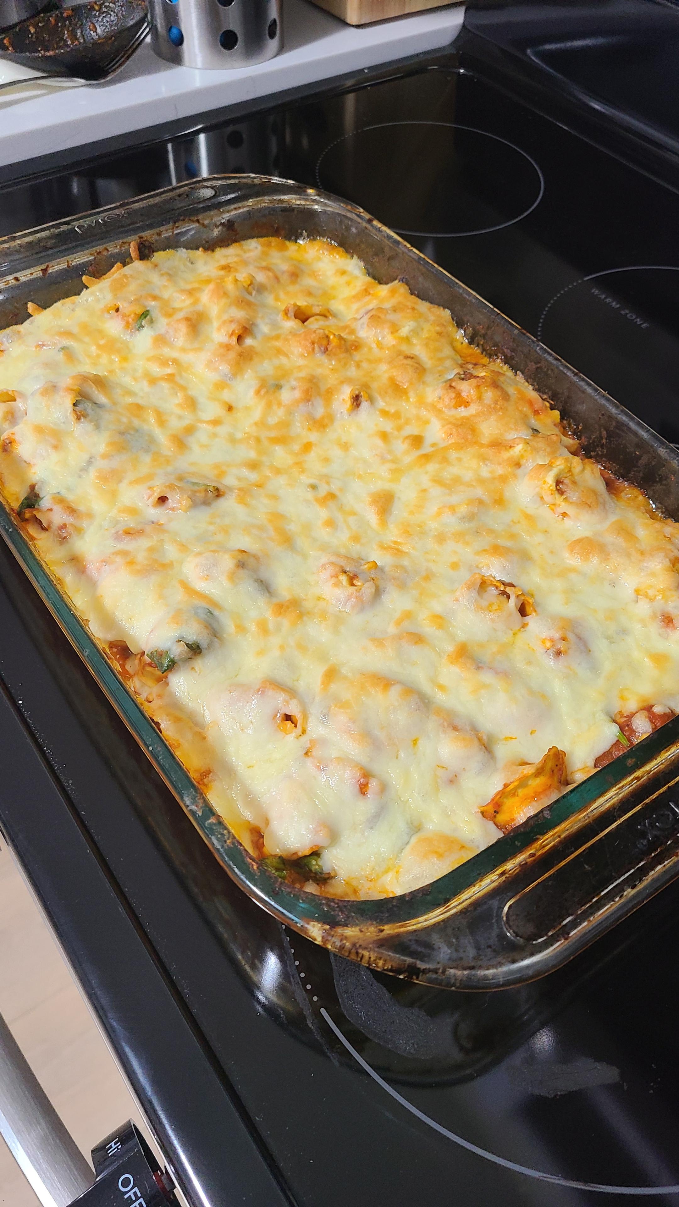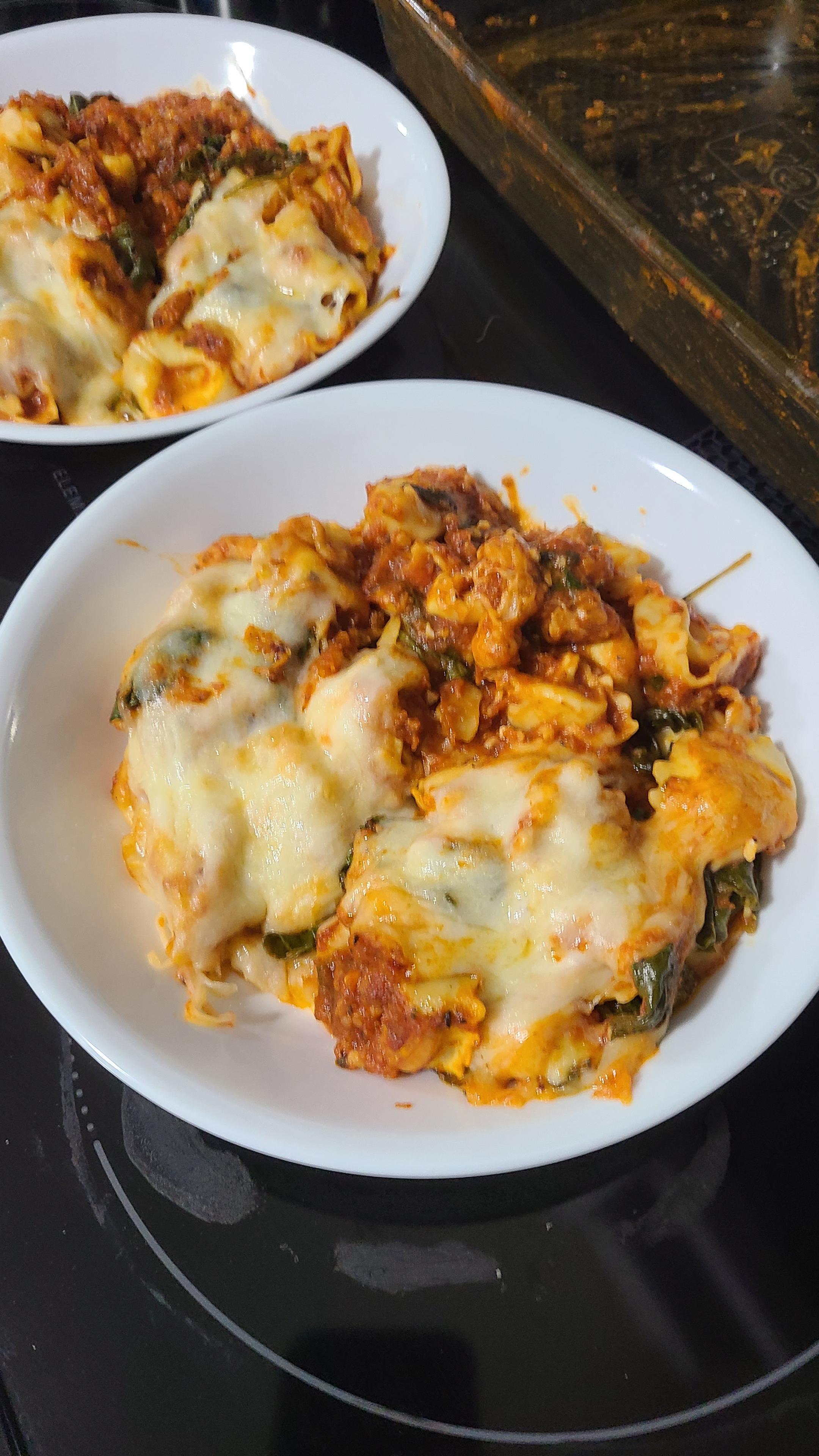 This one was the first one @retrosponge and I tried from my collection of saved recipe reels: tortellini and spinach bake with cheese.
